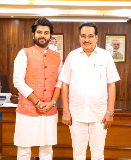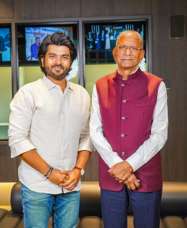 Jay Thadeshwar posing alongside Shri Anupam Singh Gahlaut, Police Commissioner of Surat, in an official setting.